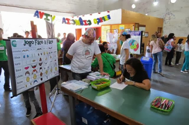 | Oficina de Desenho de Faces da Ciências e Cognição. Esta instituição dentre outras estavam espalhadas pelo salão pois o Sábado foi um desdobramento do evento II Encontro Internacional de Divulgadores da Ciência. |