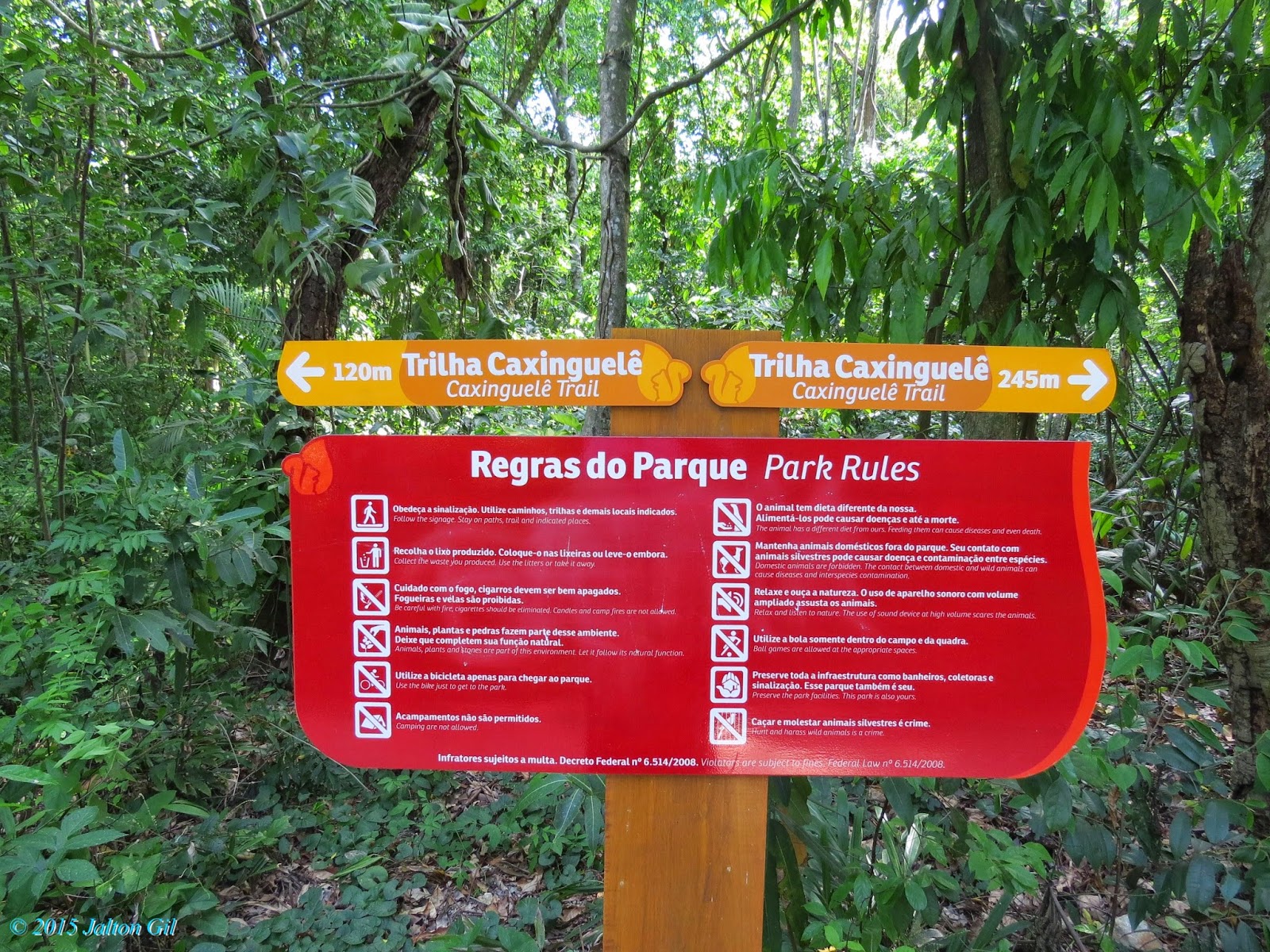 Em parte da sinalização das trilhas as regras do parque são sempre relembradas.