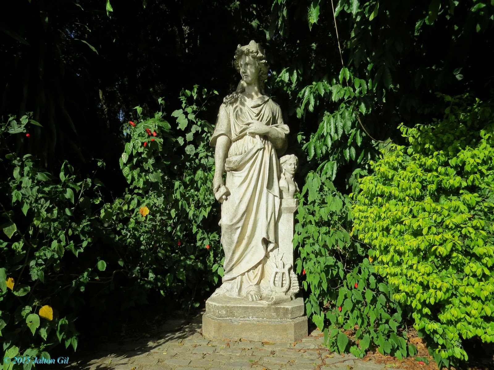 Uma estátua decorativa em jardim ao lado da sede.