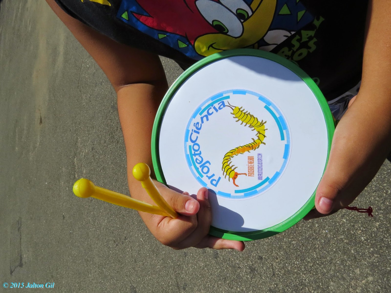A primeira criança a receber foi um menino que estava acompanhado de sua mãe e escolheu ficar com o tambor.