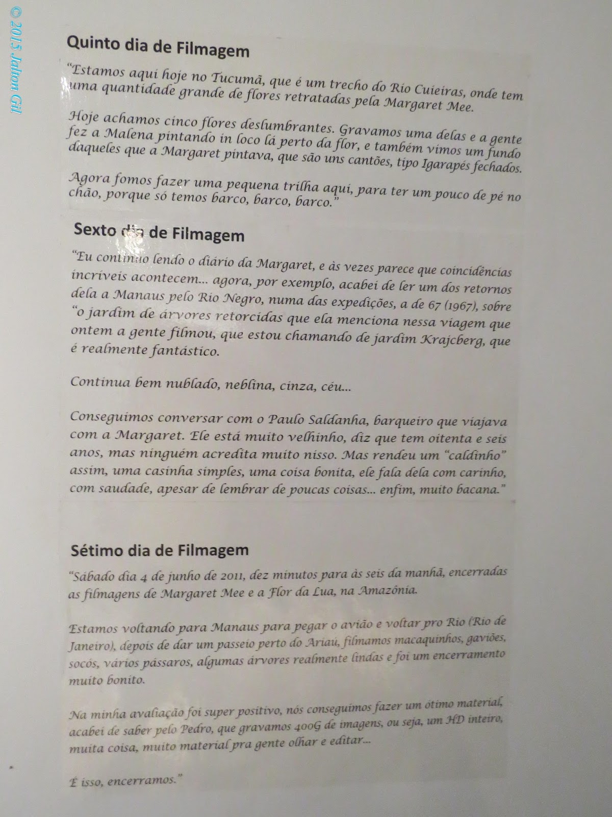 Depois de ter assistido ao filme "Margaret Mee e a Flor da Lua" no Festival do Rio em 2012 na expedição empreendida por Margaret Mee e ter adquirido o DVD o caminho natural foi o de comparecer e registrar essa bela exposição no Bairro de Santa Teresa no Rio de Janeiro.