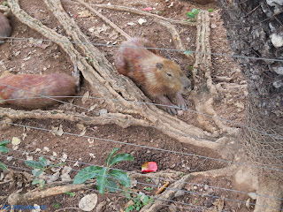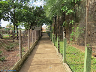 Corredor de acesso onde um sinimbú se mexia nervosamente no solo entre os dois cercados, ou seja, onde os visitantes passam! Havia casais de visitantes que também se assustaram com o animal agitado fora da jaula.