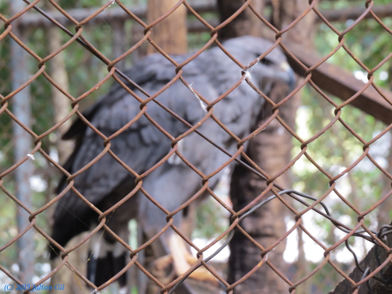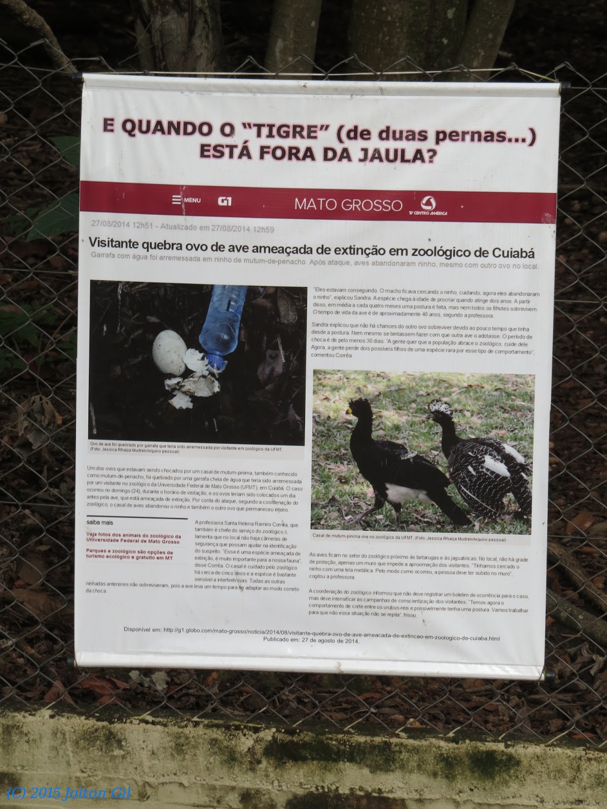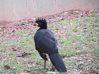 Mutum-de-penacho (Crax fasciolata) que em outra ocasião teve o ovo quebrado por visitante. Detalhe: a ave corre risco de extinção.