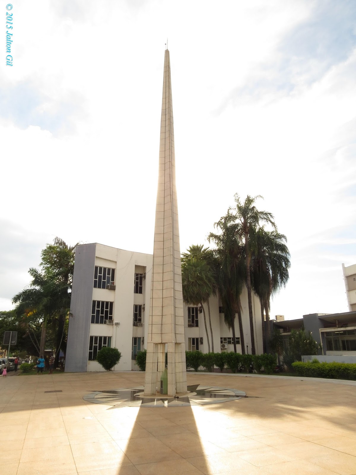 O prisma quadrangular unido a uma pirâmide quadrangular pintado de verde talvez queira fazer alusão (e homenagem) à estrutura cristalina do zircão, um mineral presente na região do Mato Grosso e que, frequentemente, está associado à presença de diamantes.