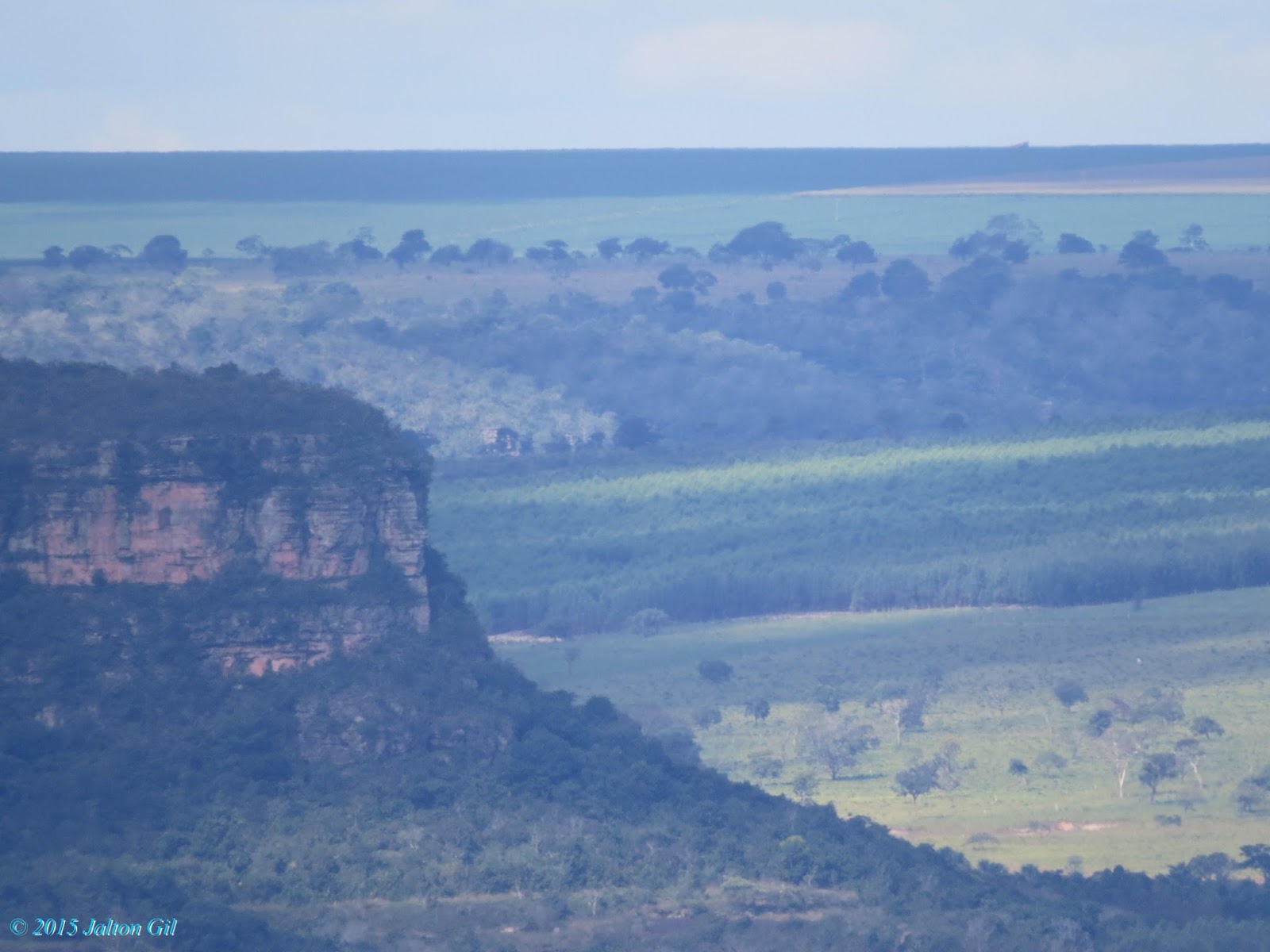 O interessante é que daqui estamos de frente vendo a parte oeste do Estado de Mato Grosso e em seguida o Paraguai, ou seja, para quem vem do Sudeste do Brasil, antes de chegarmos à Cuiabá passamos (dependendo da rota aérea do avião - e o bom senso em uma relação de economia de combustível é adotar a linha reta) por cima da Chapada dos Guimarães (como meu voo foi norturno e não sentei próximo à janela não pude verificar esta informação).