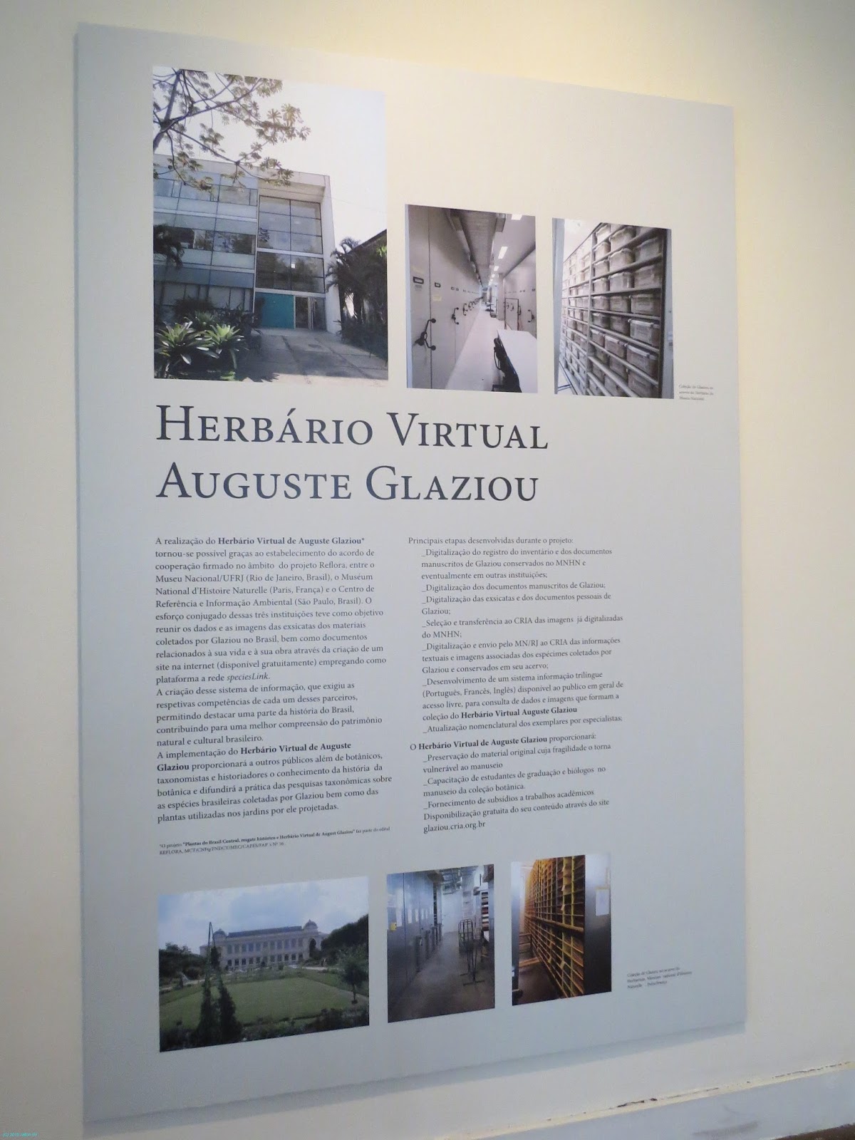 Painel de abertura com a descrição da exposição "Plantas do Brasil Central: resgate histórico e criação do Herbário Virtual Auguste Glaziou"